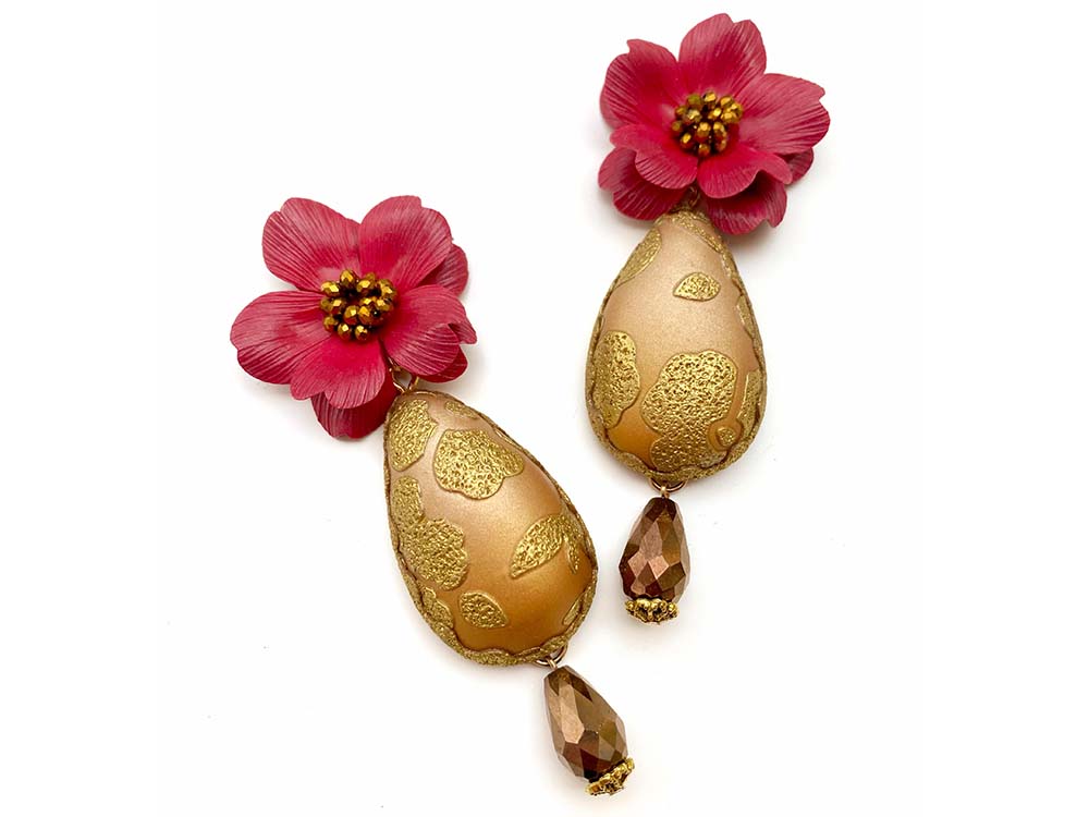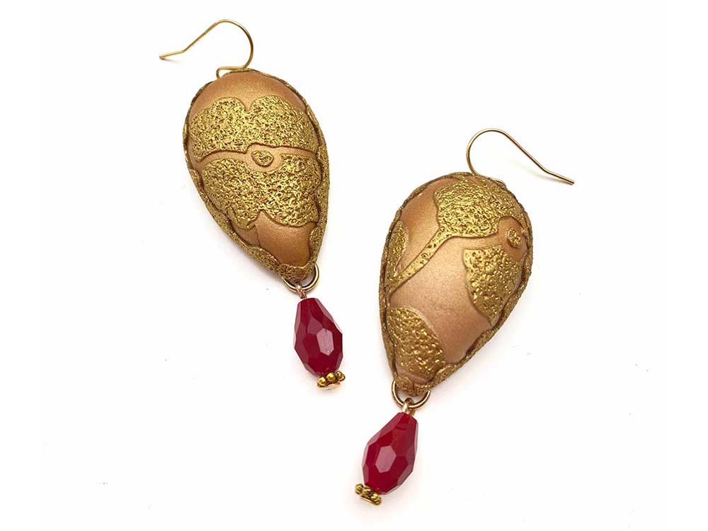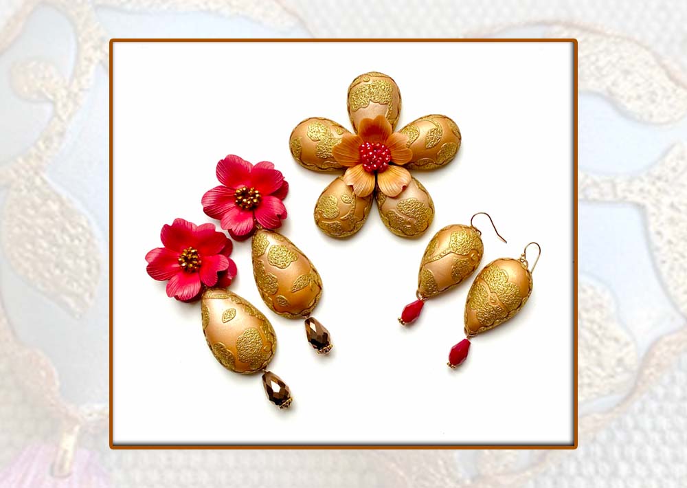 Join master artist Sara Amrhein, LIVE Online Saturday, December 6th at 10 AM ET, for a stunning exploration of polymer clay techniques that transform your work into jewelry inspired by the richness of brocade fabric. In this class, youโll create elegant, hollow-form earrings and a brooch that shimmer with metallic detail and timeless sophistication.